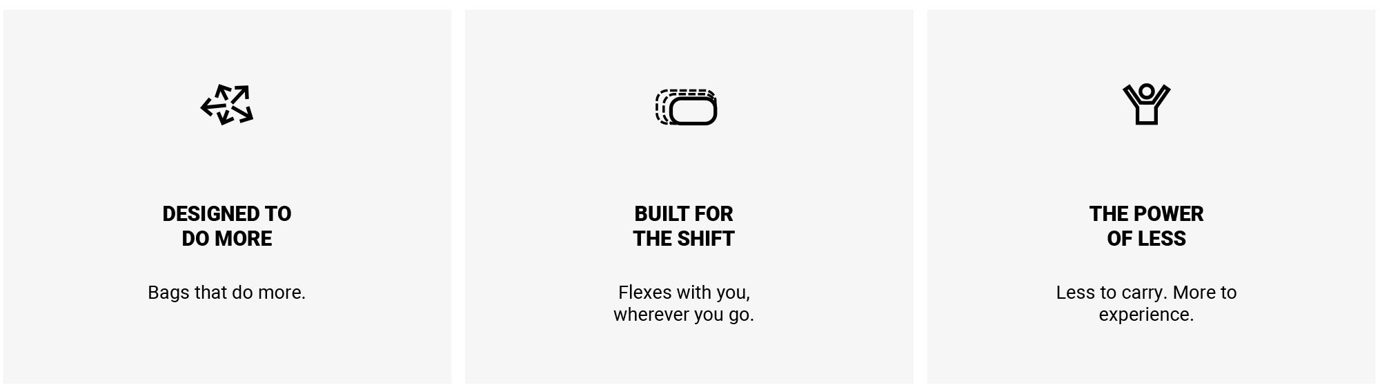 LIFE ISN'T STATIC. YOUR BAGS SHOULDN'T BE EITHER.