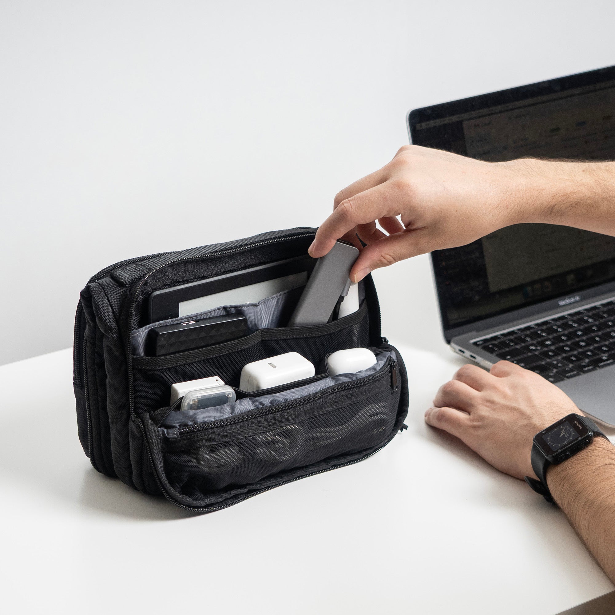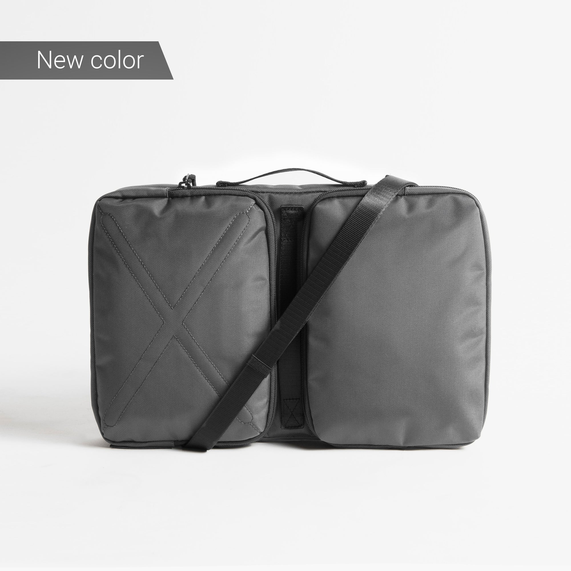 A laptop bag that transforms into a compact organizer.