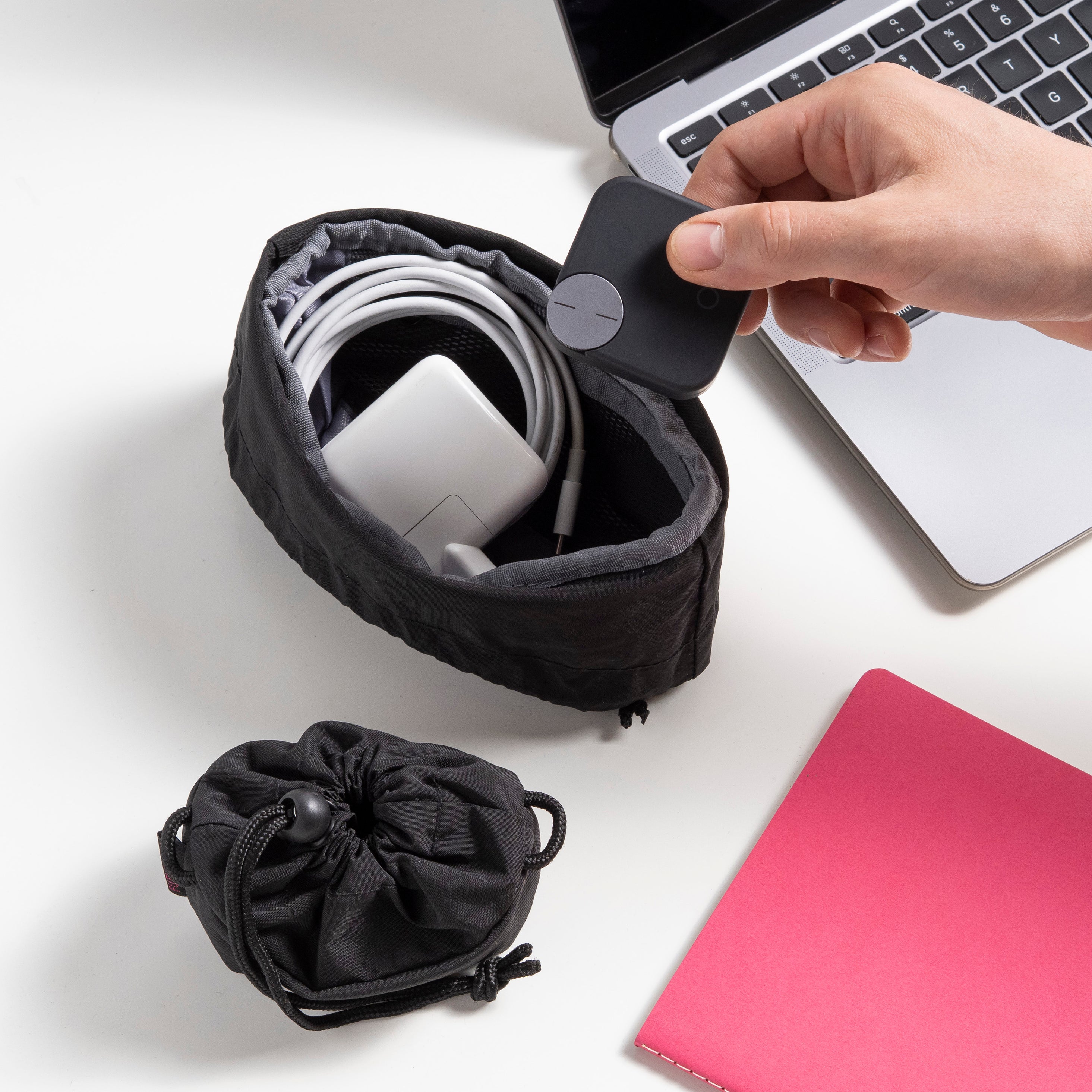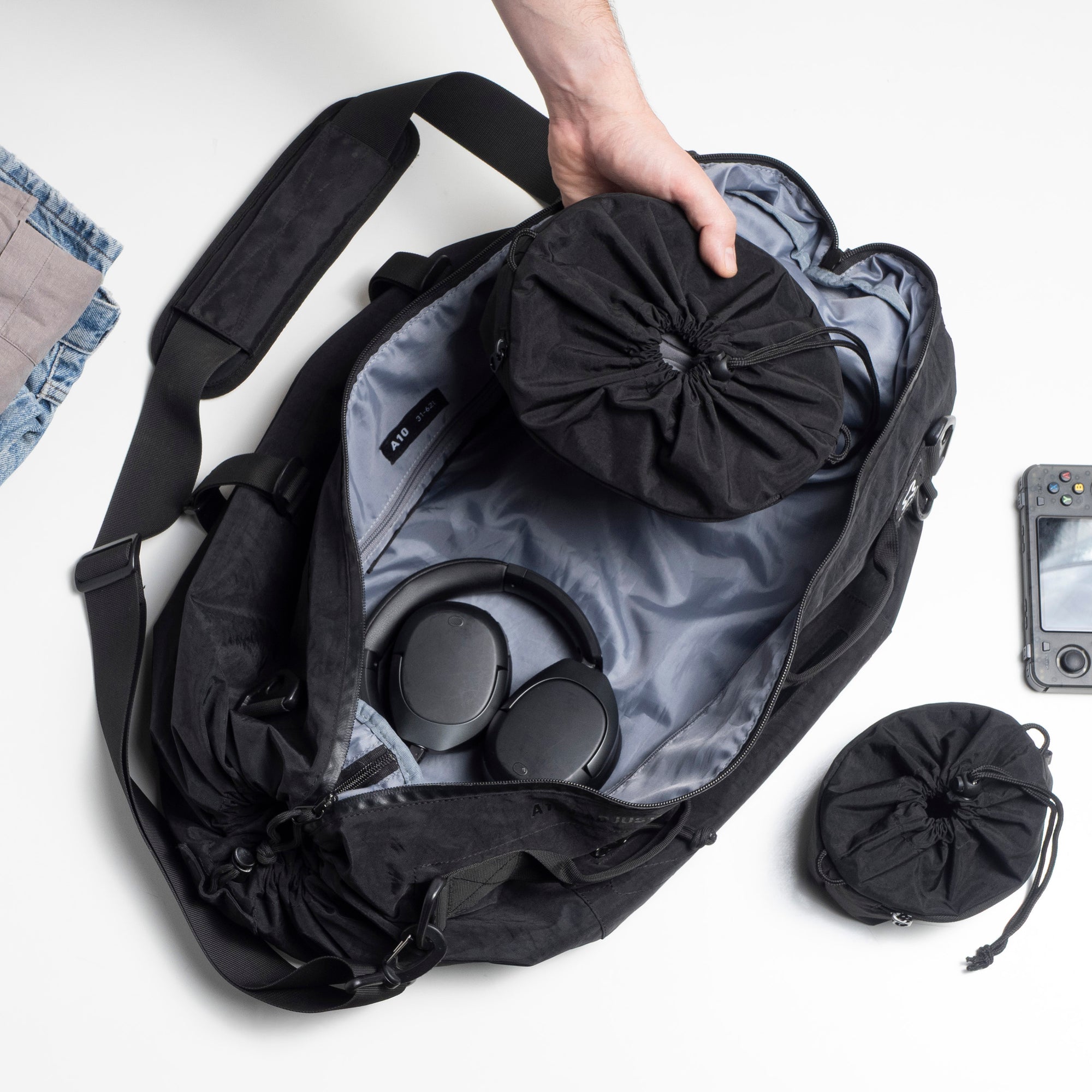 Each pouch is sized for a different category — from micro-essentials to tech to bulkier gear. Together, they keep everything you carry neatly sorted and easy to find.