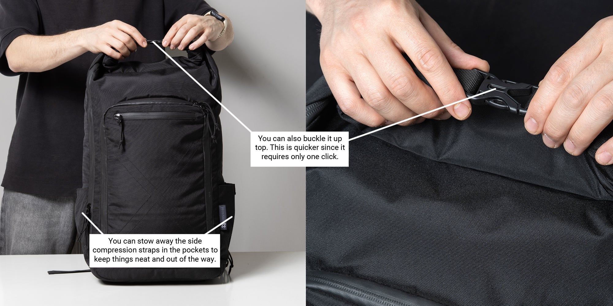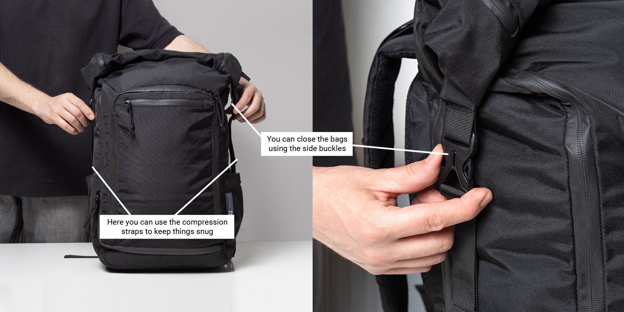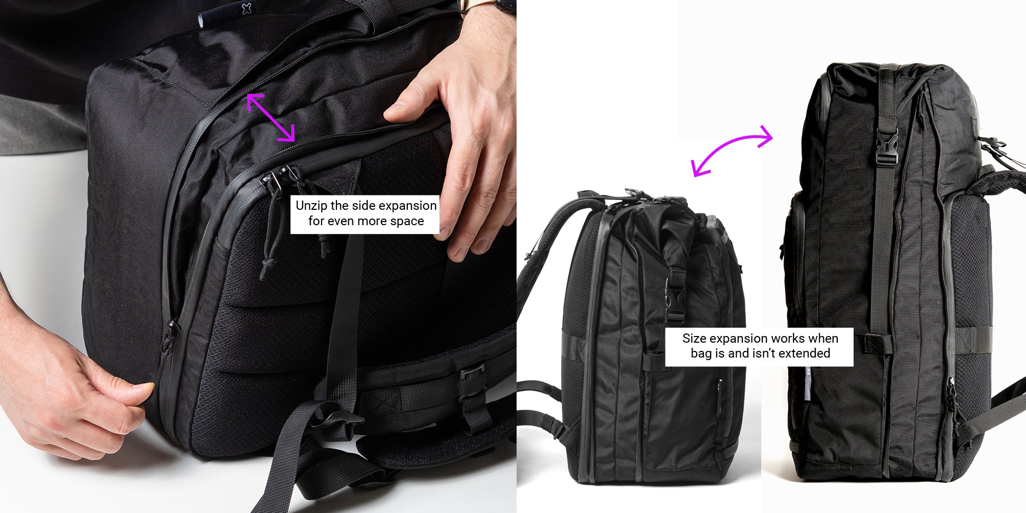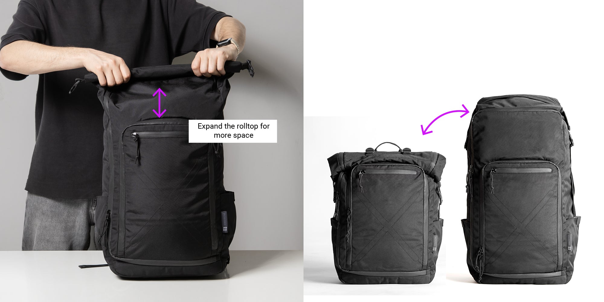 A backpack designed to adapt to you. More space for weekday activities and that jacket for when it gets to hot - even more space for travel. Sizes back down to keep things snug.